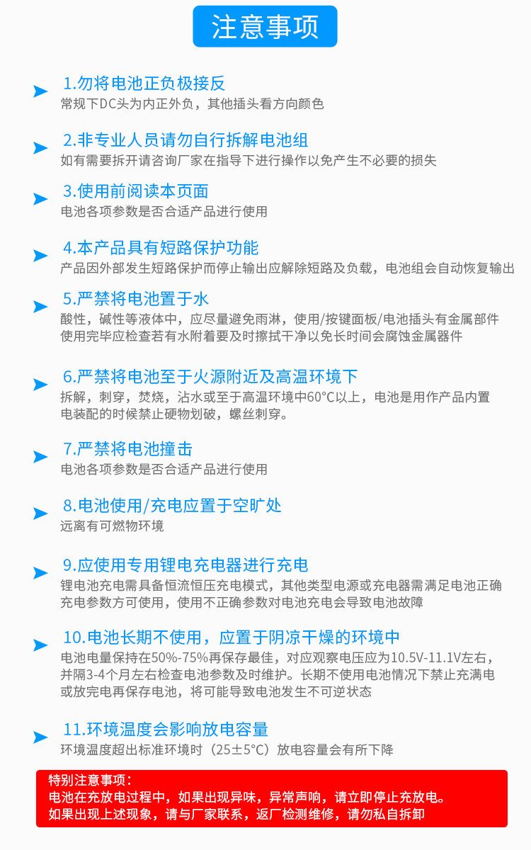 Не кладите аккумулятор в влажном месте или воде; после сброса воды она нанесет ущерб или сбой защитной платы. Высыхайте на солнце, не заряжайте и не сбросите, свяжитесь с продавцом и не имеют дело с это вовремя. Телеграфные отходы;