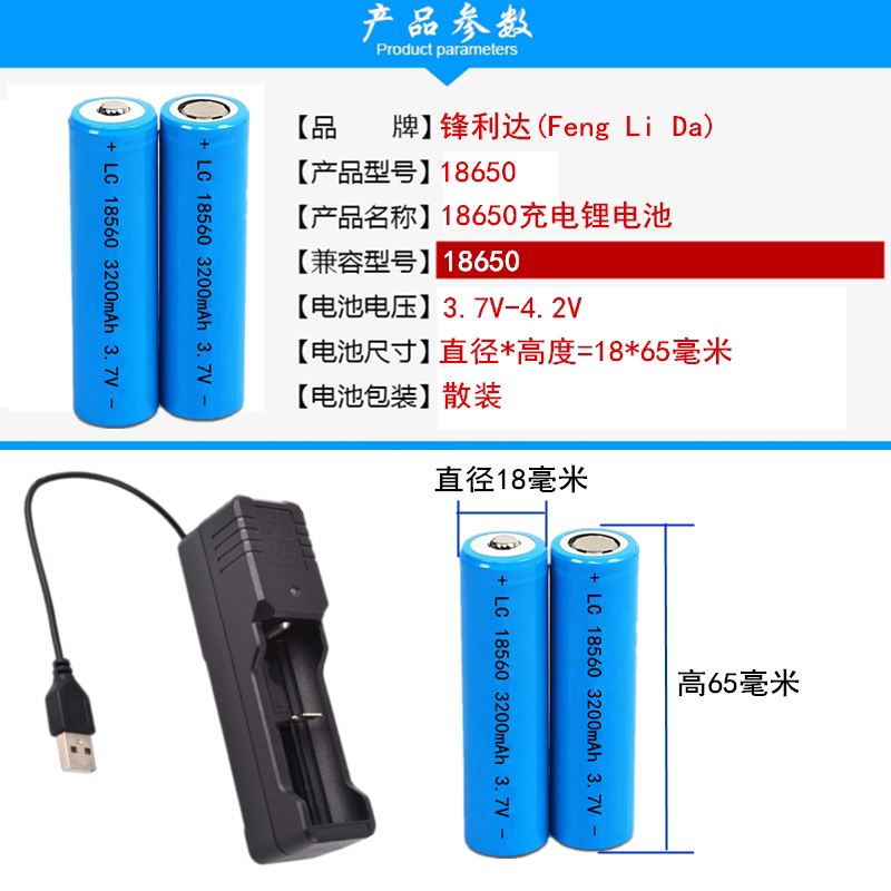 - USB -зарядное устройство+2 секция 18650 батарея (плоская головка)