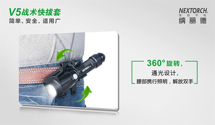 Nextorch Nalide V5 Tactical Fast -Pull Flashlight 360 -DEGREE Вращение может заблокировать портативный общий общий клип