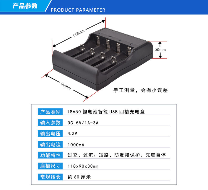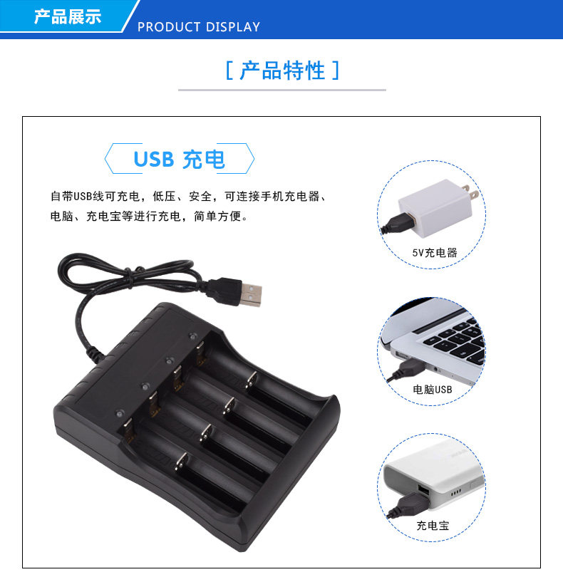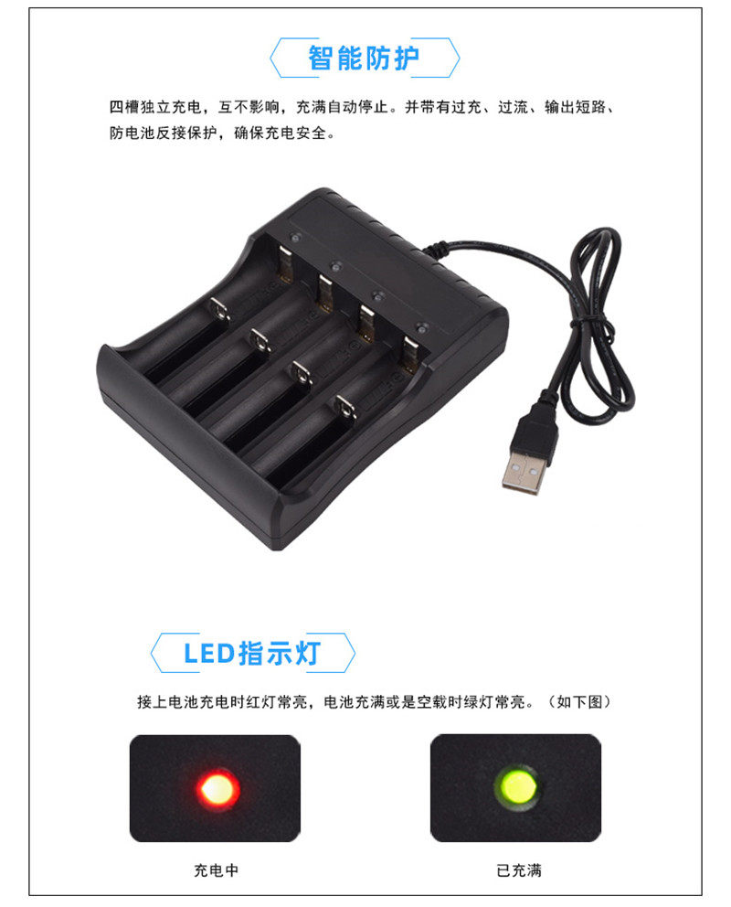 - USB четыре слота+четыре 18650 батарея плоская головка