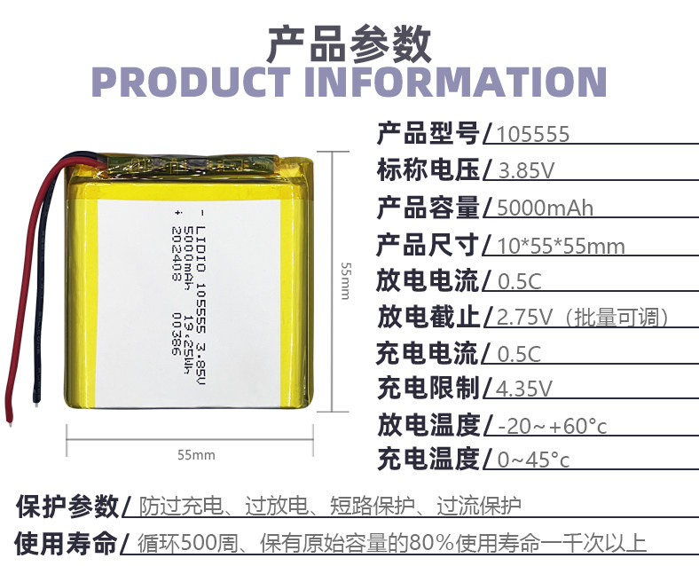 105662 литиевая батарея 3,8 В 5400 мА, полимерный перезаряжаемый сердечник высокого напряжения с защитной панелью