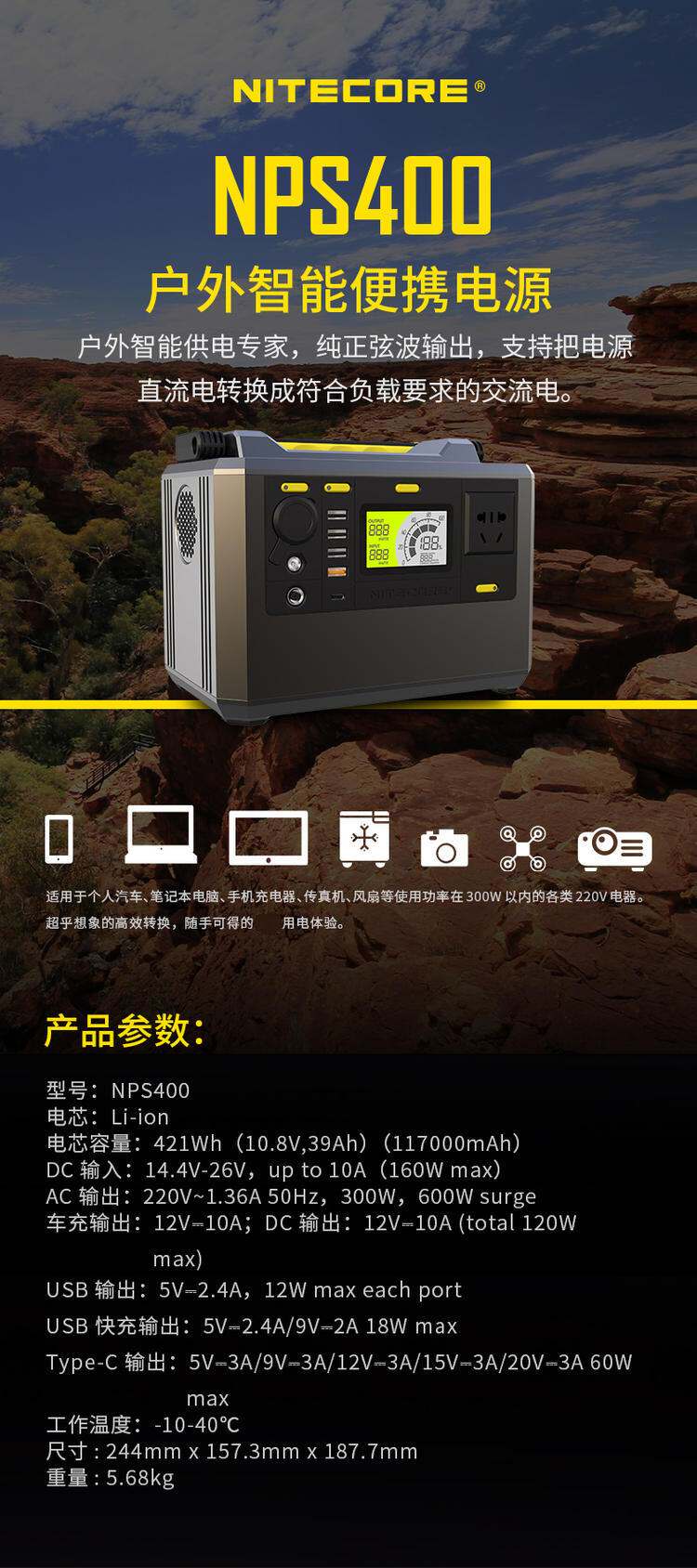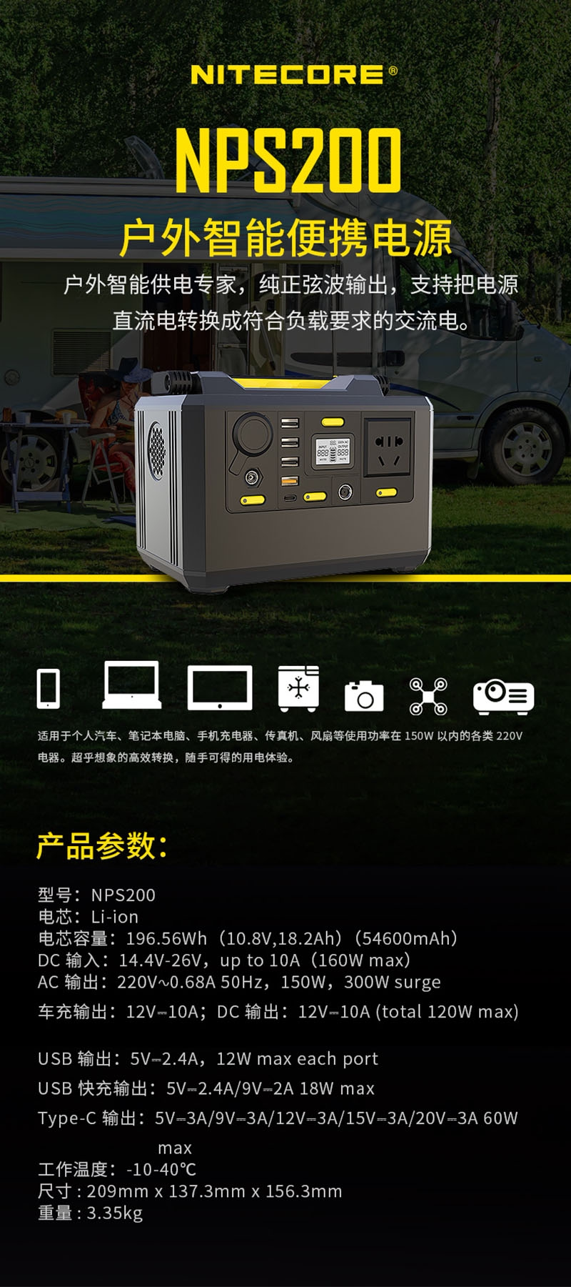 NITECORE Дорожный портативный аккумулятор для кемпинга, блок питания, 220v, высокая мощность