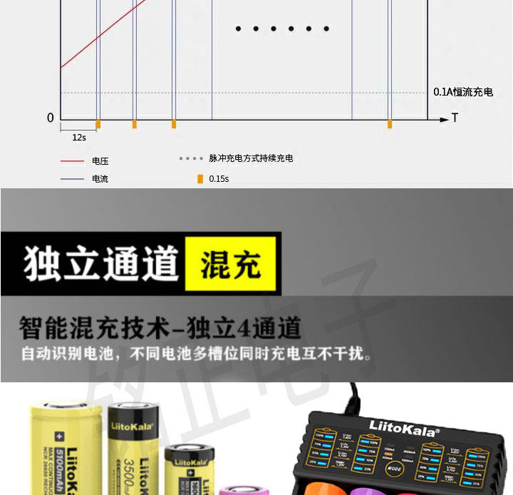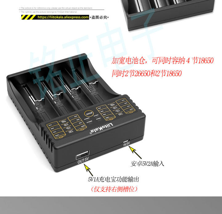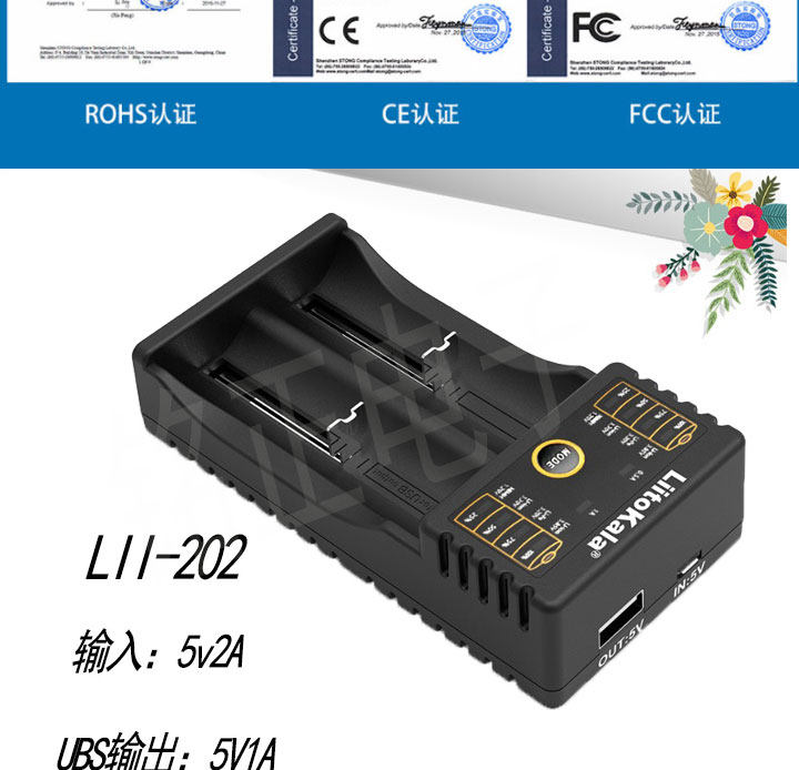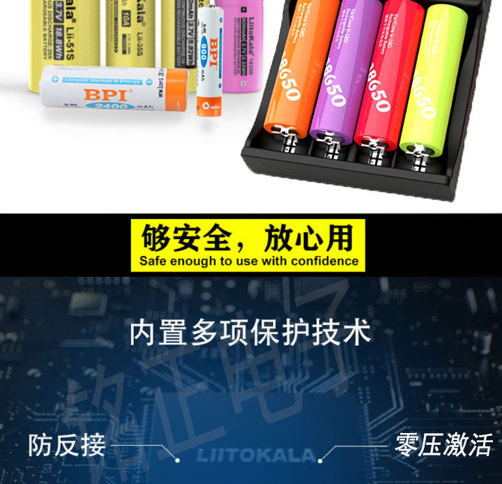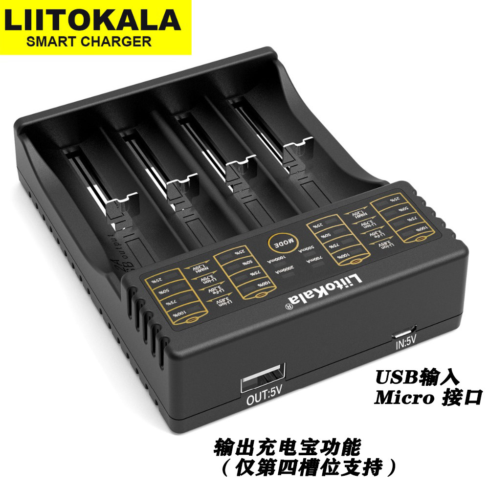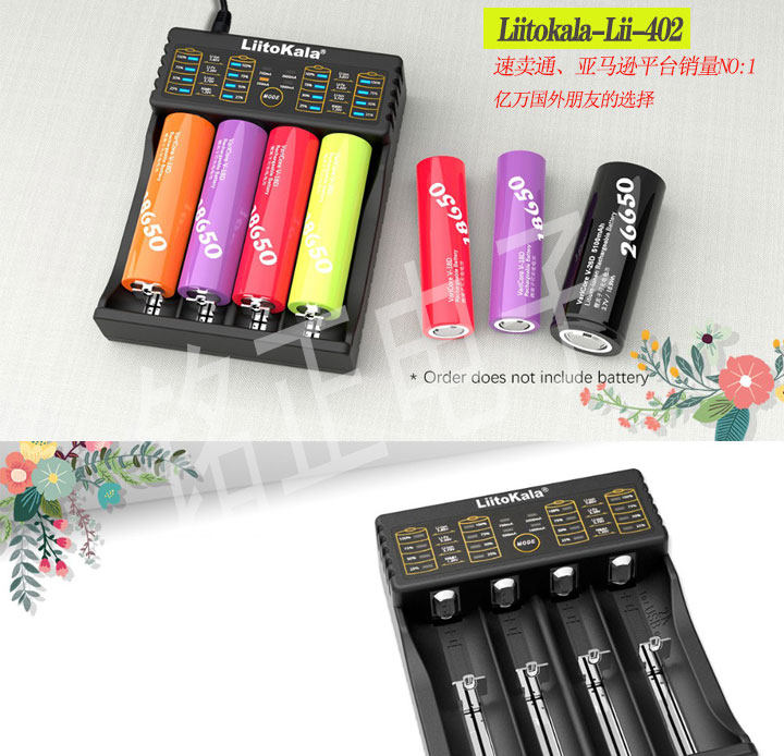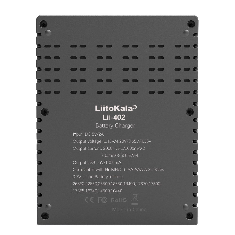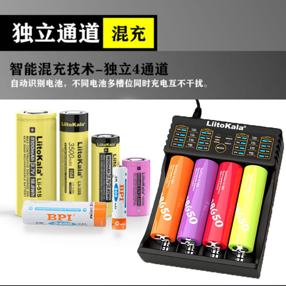 LII402 Аккумулятор 18650 Зарядное устройство с четырьмя показателями быстрого зарядки.