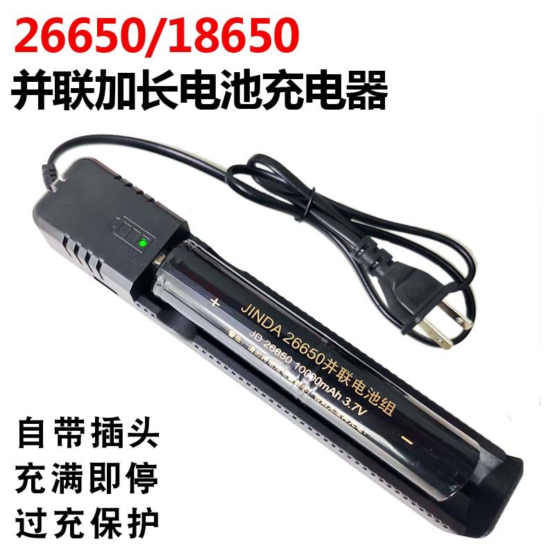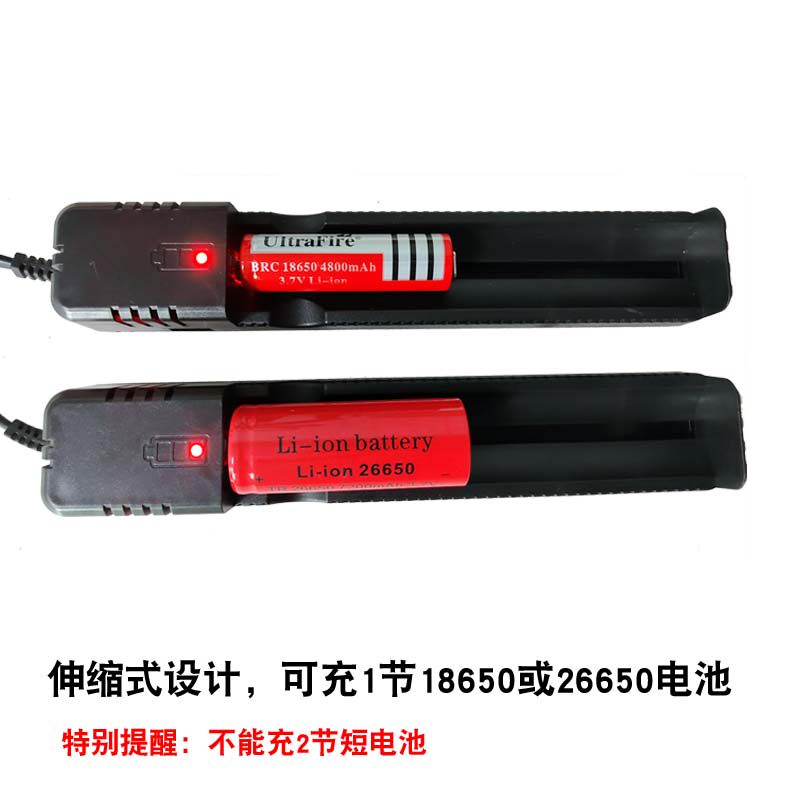 Зарядное устройство специально разработано для параллельной зарядки аккумуляторов 18650 и 26650;он может заряжать только параллельные батареи длиной 13,2 см и диаметром 1,8 см или 2,6 см. Две короткие батарейки использовать нельзя.
