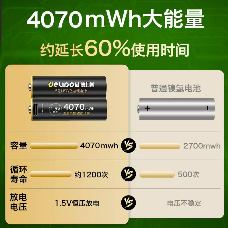 Delipu № 5 Перезаряжаемая батарея USB1.5 В литий -литий -литий