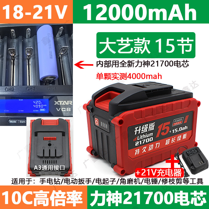 Совместимые литиевые батарейки, электродрель, батарея с зарядкой, 21v, 12AH, 16AH