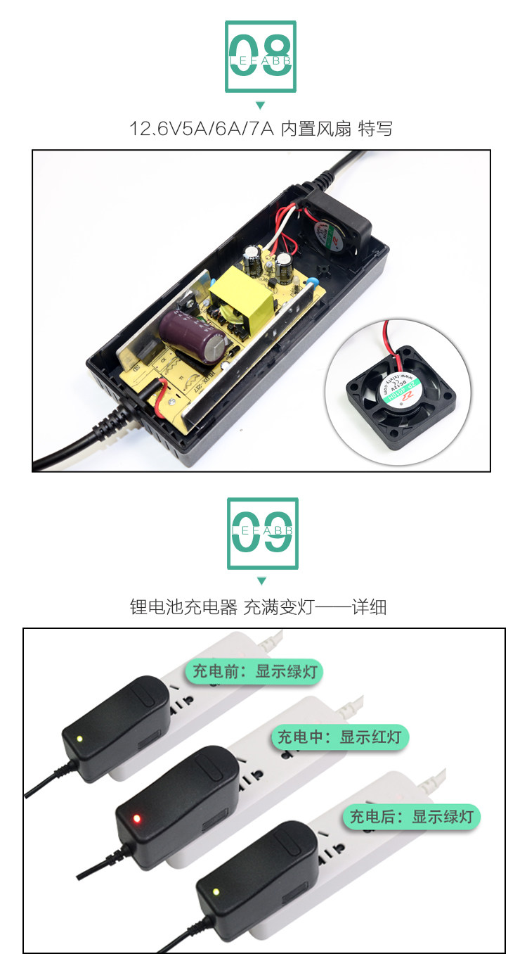 Когда ток зарядки достигает тока, светодиодный индикатор превращается в зеленый свет. В настоящее время батарея была полностью заряжена при небольшом токе при небольшом токе, пока он не будет полностью заряжен.