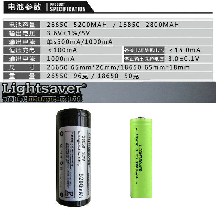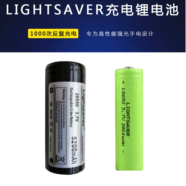 Lightsaver26650 Литийная батарея высотой 5200 мАч с низким внутренним сопротивлением 32650 Зарядка 21700 Глобальный фонарик света