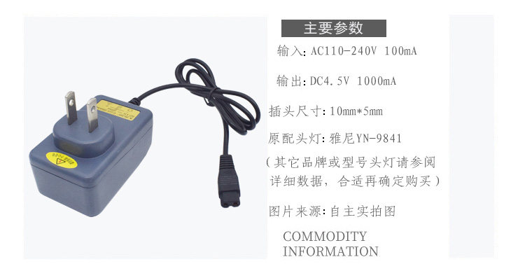雅尼 YN-9841 литиевая электрическая фара, оригинальная квадратная вилка, 4,5 В, зарядное устройство, биполярная маленькая плоская вилка, 1 А, быстрая зарядка
