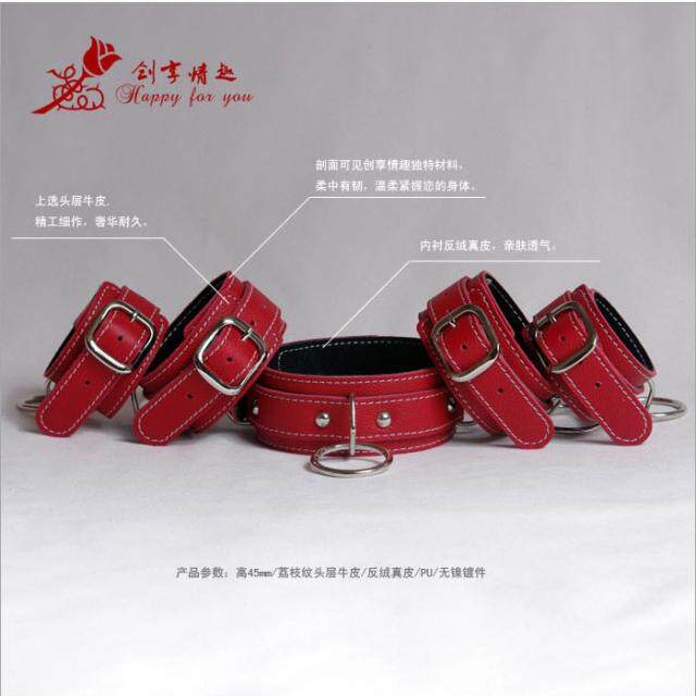 Создание удовольствия роскошным кожаным набором из пяти частей T-003 Красная кожа \ рукалки, ноги крикета SM Sex Products
