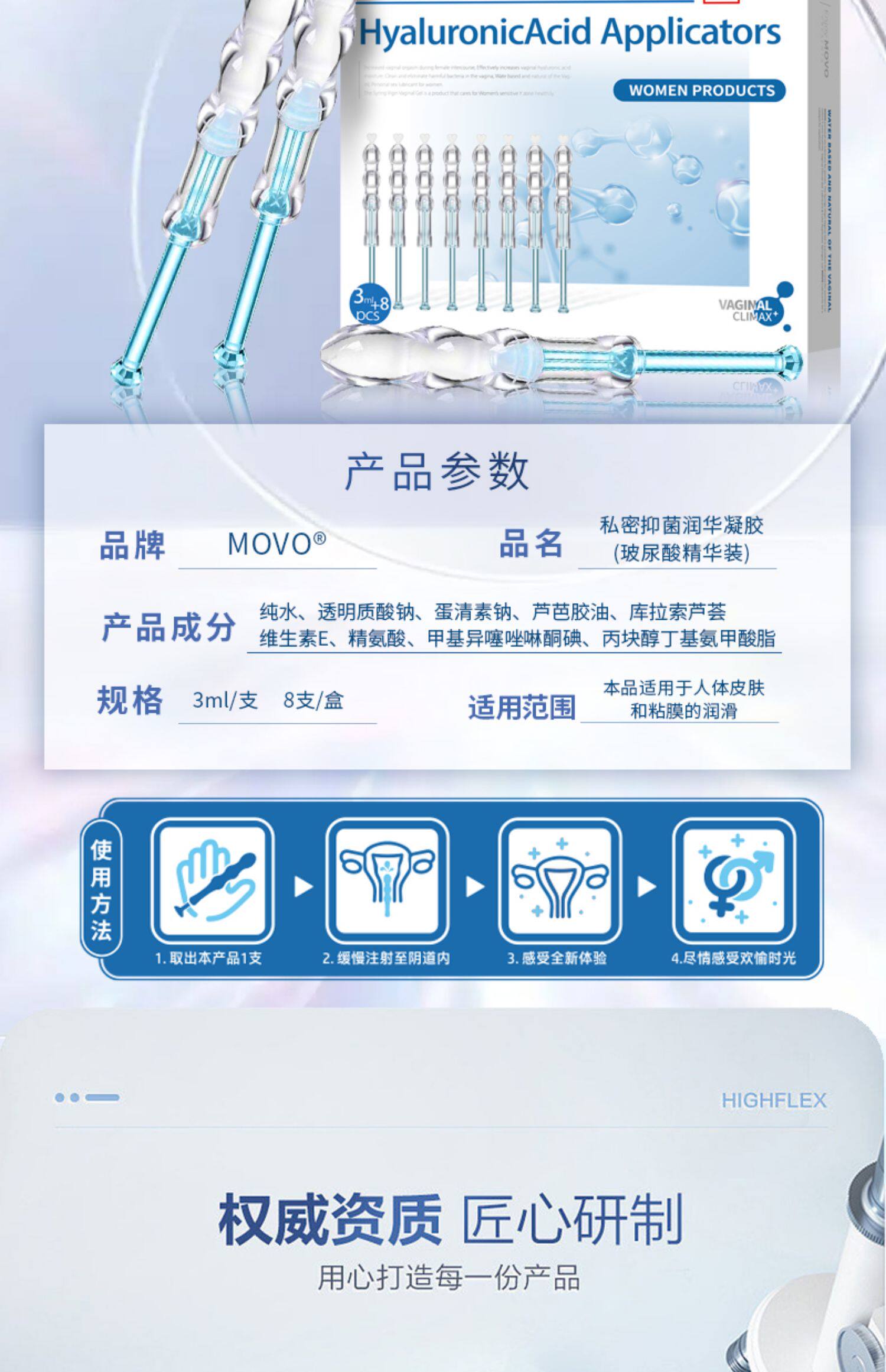 Вагинальные смазочные пары продукты для женщин с гладкими частными частями, пожилые люди с пожилыми людьми с сексом сухой гиалуроновой кислотой, свободной промывкой и лизаниями