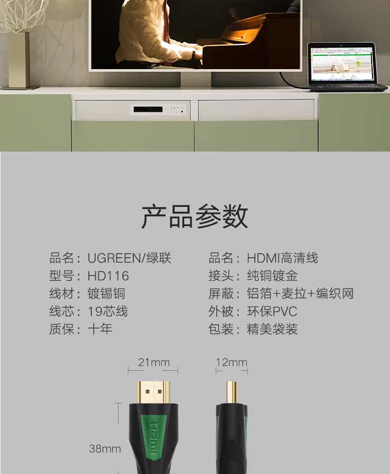 绿联 HDMI Line High -clear Line 2.0 Версия Set -Top Box PS4 Computer 4K TV Connection Data Cable Кабель видео кабель