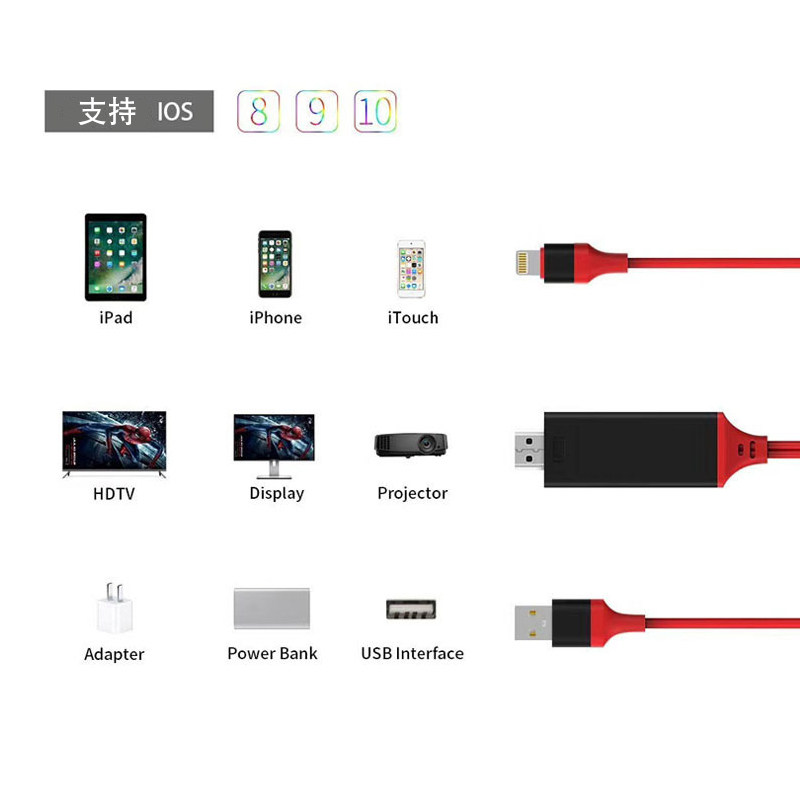 Мобильный телефон Apple iPhone с разъемом Lightning к HDMI, компьютер, iPad, подключение планшета, монитор ТВ-проектора, HD-кабель, кабель с роликовым колесом для того же экрана, адаптер видеоконвертера