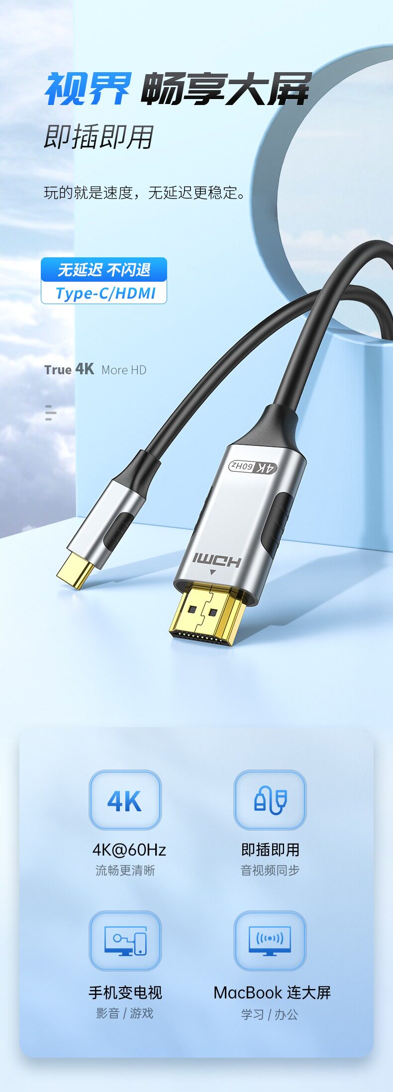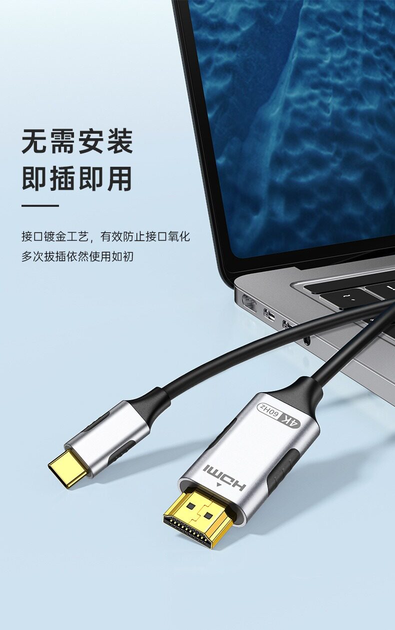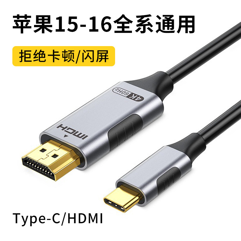 Кабель Typec-HDMI, подходящий для мобильного телефона Apple iPhone16pro, проекционного экрана 15max, телевизора