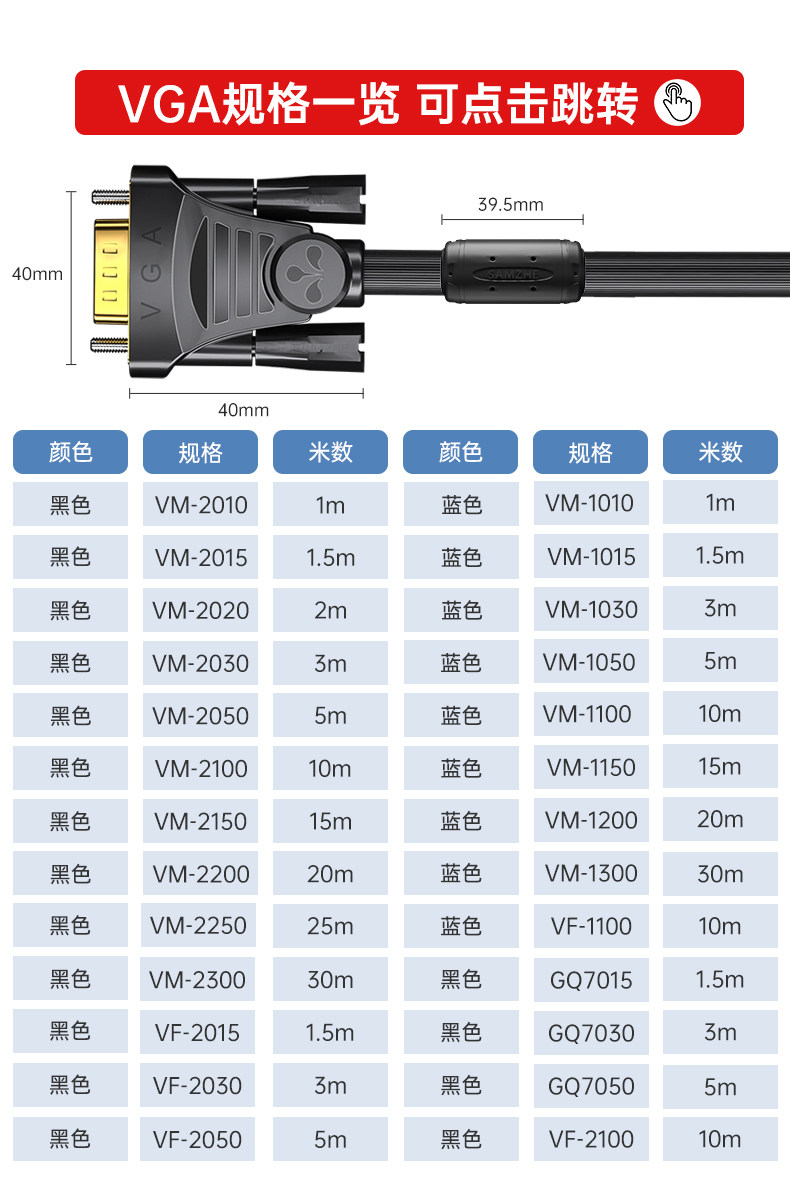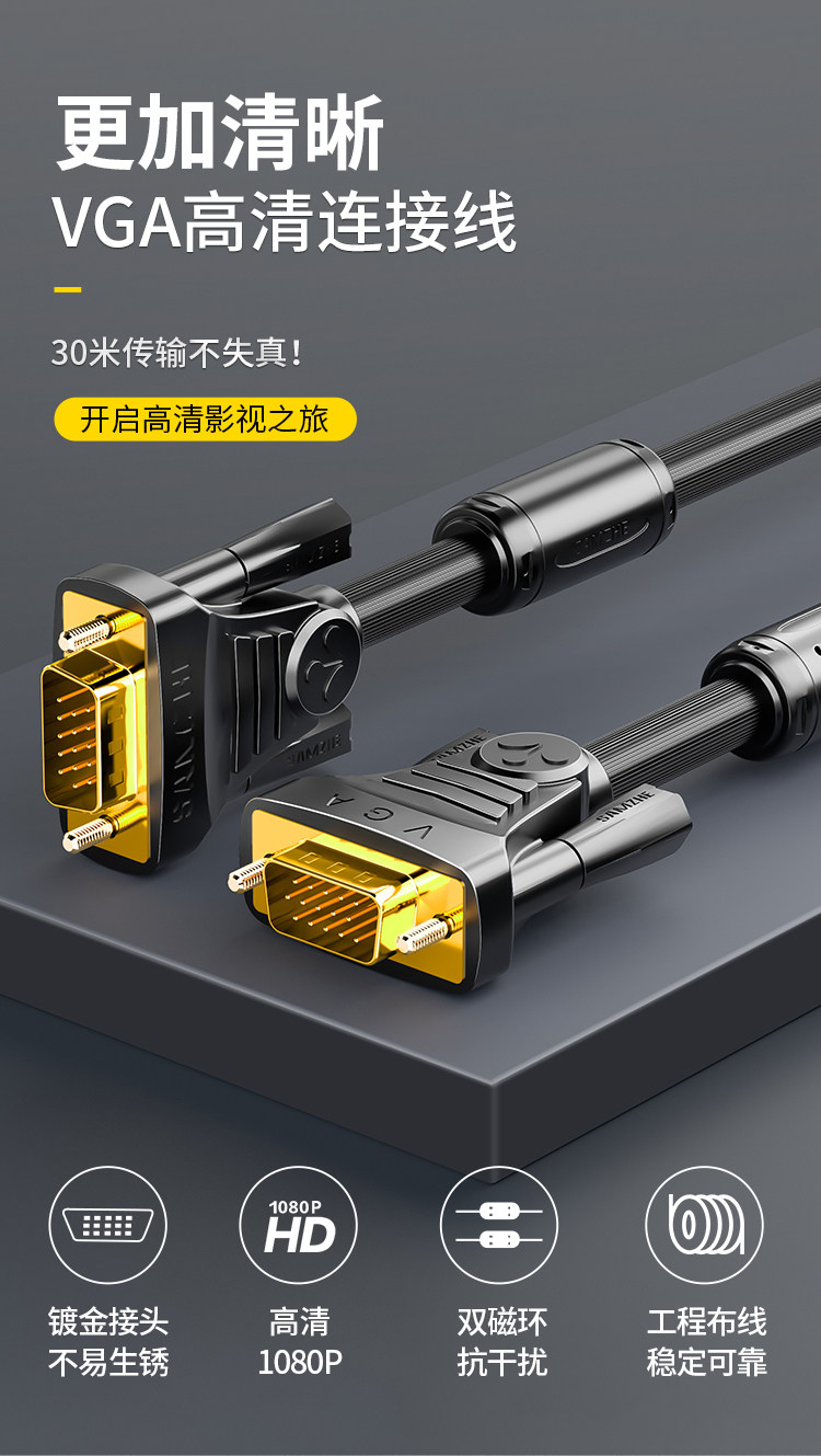 Shanze VGA Cable VGA3+6 иглы/иглы HD Двойное магнитное кольцо VM-2150/2050/2010/1030/1020