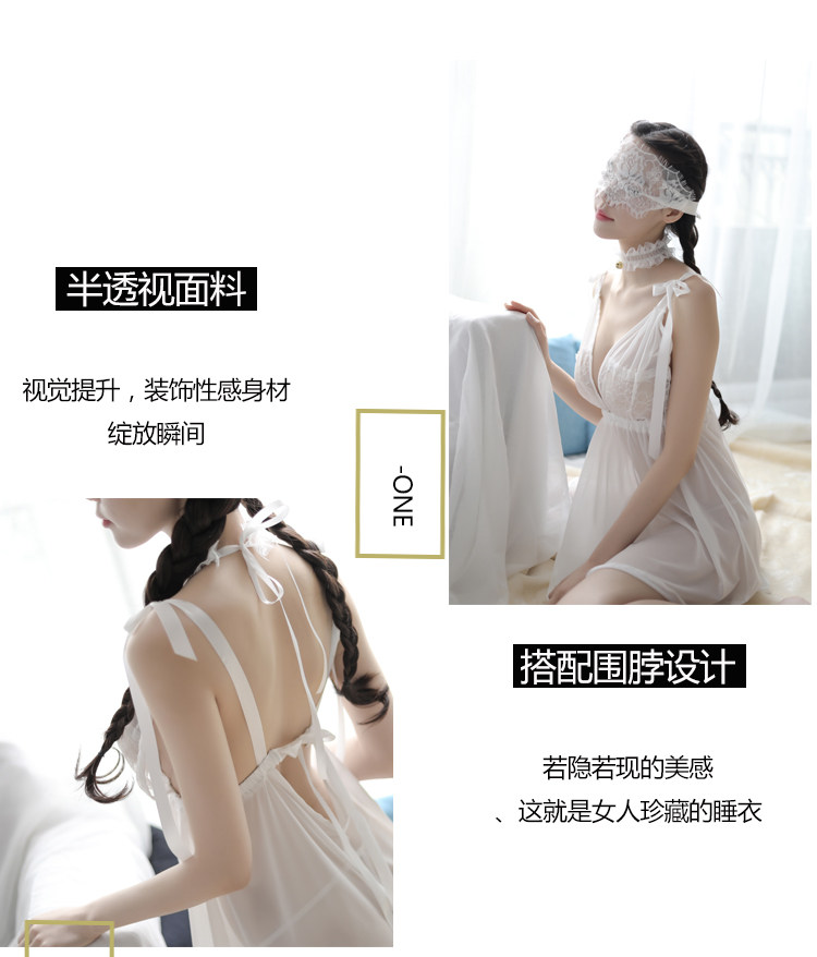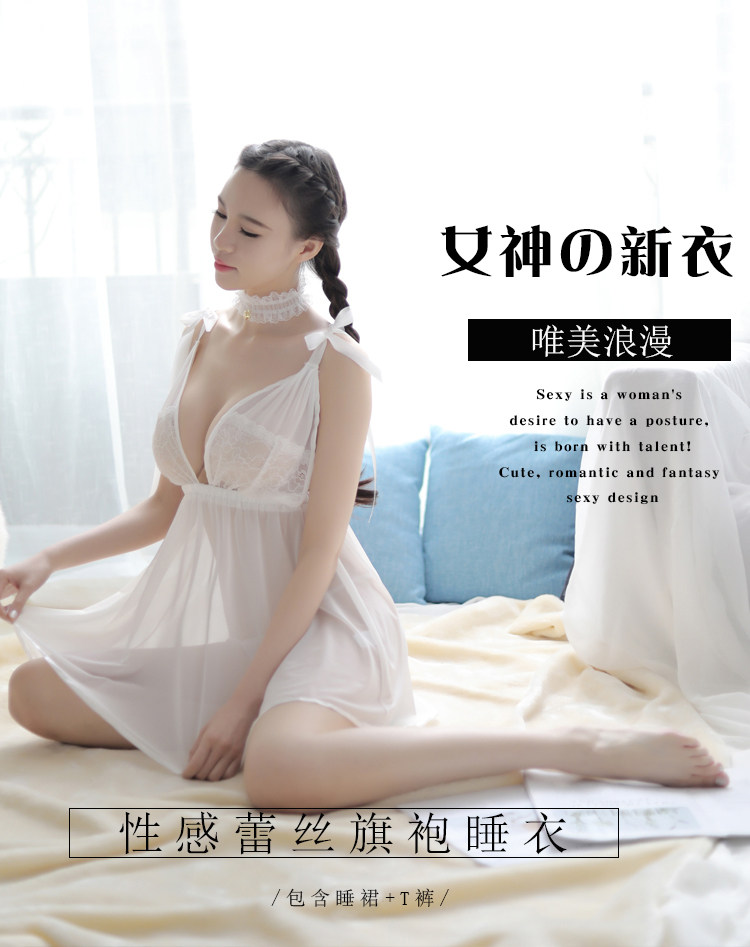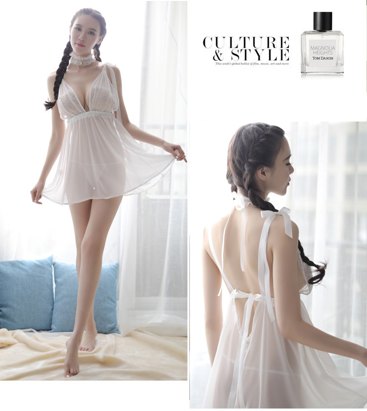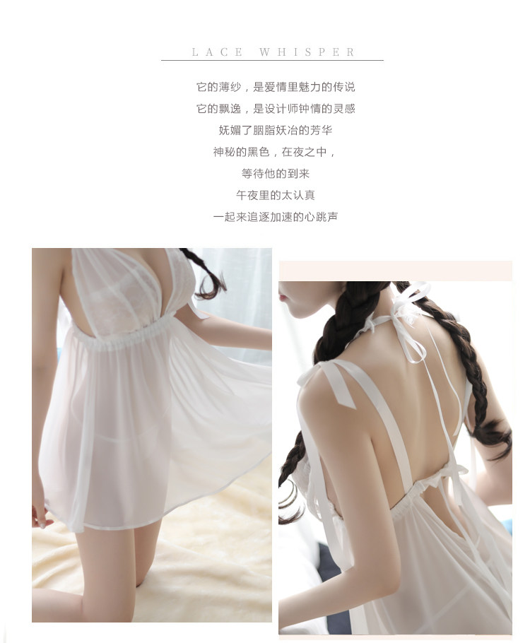 Нижнее белье, сексуальная пижама, милая юбка, шифоновый комплект, с открытой спиной, большой размер