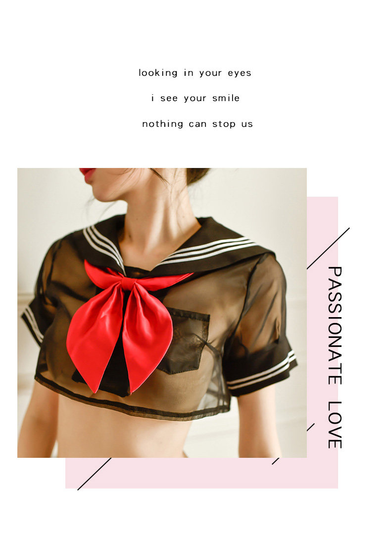Сексуальное нижнее белье, прозрачный военно-морской комплект с бантиком