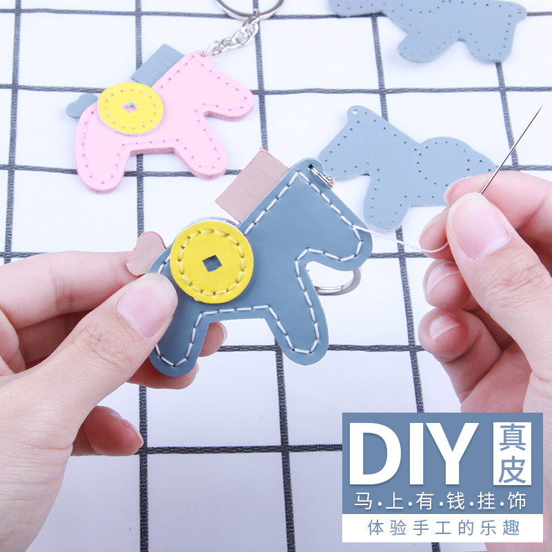 Милый маленький кожаный креативный брелок ручной работы, набор материалов, популярно в интернете, DIY