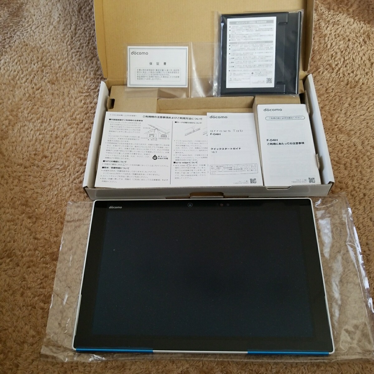 Fujitsu F-04H, экран есть10-дюймовая органическая электролюминесцентная панель с разрешением 2K,Сценарий - Snapdragon 808, 3GB RAM, 32 ГБ ПЗУ, батарея 6000 мАч и система Android 6.0.Основной объектив составляет 8,1 миллиона пикселей, а фронт составляет 2,4 миллиона пикселей.Основной момент на том же уровне, что и F-02HПризнание радужной оболочки и стандарты военных закупок в СШАMil-Spec14 N Anti-Body.