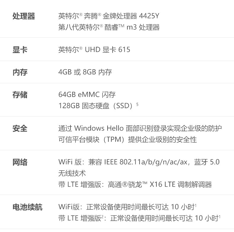 - Surface GO2 M3/8G/128G [демонстрировать] LTE может вставить 4G -транспортную карту