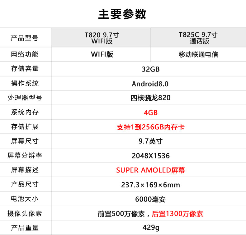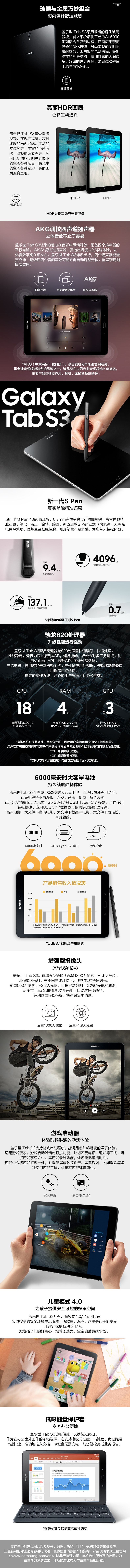 | Тип пакета: | Galaxy Tab S3 T820 Wi -Fi Версия, Galaxy Tab S3 T825C Полная сеть+версия WiFi |