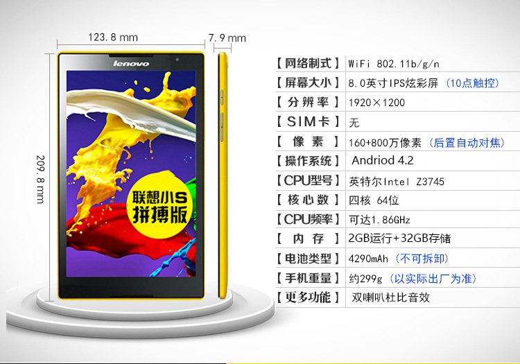 Lenovo/Lenovo Tab S8-50F 8-дюймовый экран высокой четкости 2G GPS GPS Android планшет компьютер Dolby звук