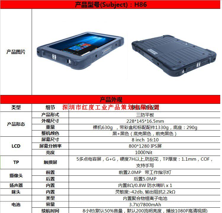 红度 Планшетный промышленный ноутбук защищен от пыли, воды и ударов, 8 дюймов, x86, защита при падении