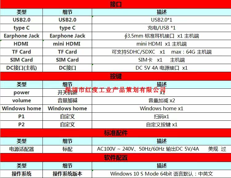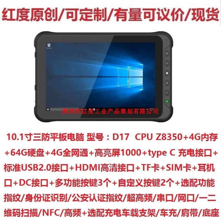 Процессор Четырехъядерный процессор Intel Z8350 1,92 ГБ + память 4 ГБ + жесткий диск 64 ГБ + полная сеть 4G + экран высокой яркости 1000 + интерфейс зарядки постоянного тока + интерфейс зарядки типа c + стандартный интерфейс USB2.0 + датчик ускорения силы тяжести + GPS + двухдиапазонный WIFI + Bluetooth +Win10 System или Android 5.1 System+Handheld Case+Outdoor Portable Direcer Gift One One