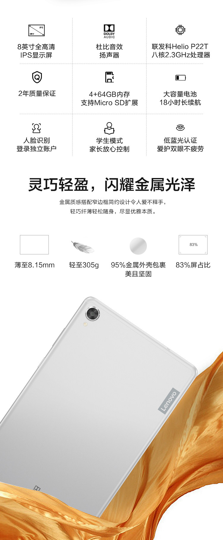Lenovo, планшетный ноутбук для школьников, 8 дюймов, 4G, 64G, защита глаз