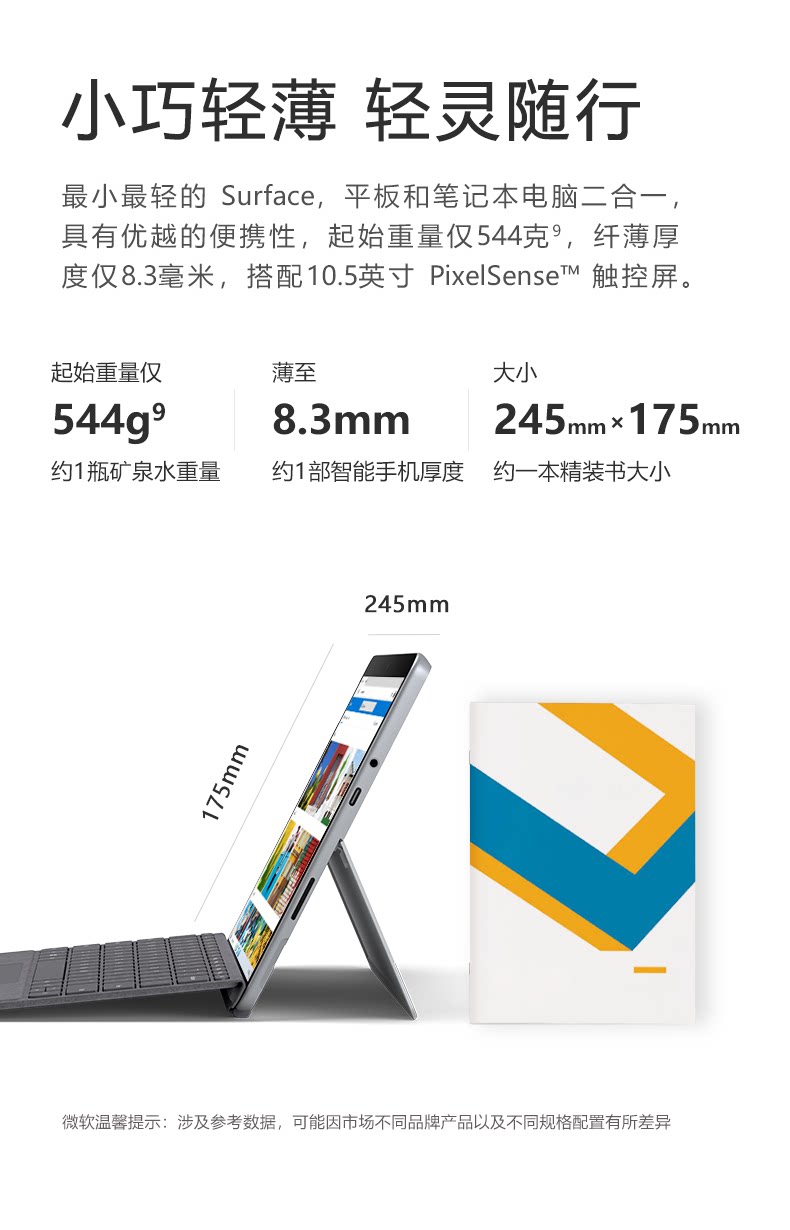 Microsoft, планшетный ультратонкий портативный ноутбук, 8gb, 128gb, 10.5 дюймов, 2 в 1, сенсорный экран