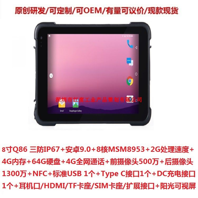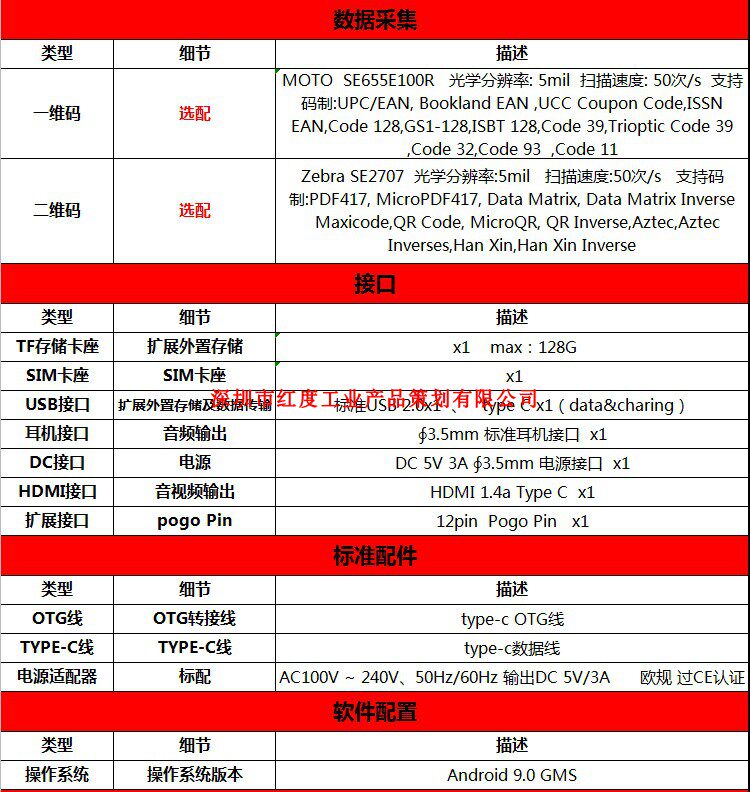 CPU MSM8953 (8Core)+2G Скорость обработки+4G память+64G жесткий диск+4G полная функция сетевого вызова+  Android 9.0 System+Handheld Case+GPS+NFC+Bluetooth+Dual -Frequency WiFi+стандартный интерфейс USB 2.0+Интерфейс типа C+HDMI High -Definition Интерфейс+интерфейс наушников+TF -карта+SIM -карта+интерфейс зарядки DC+Video Sunlight Видео. Экран+передняя камера 5 миллионов+задняя камера 13 миллионов+необязательно одно двухмерное сканирование кода/база зарядки/зарядная кронштейн