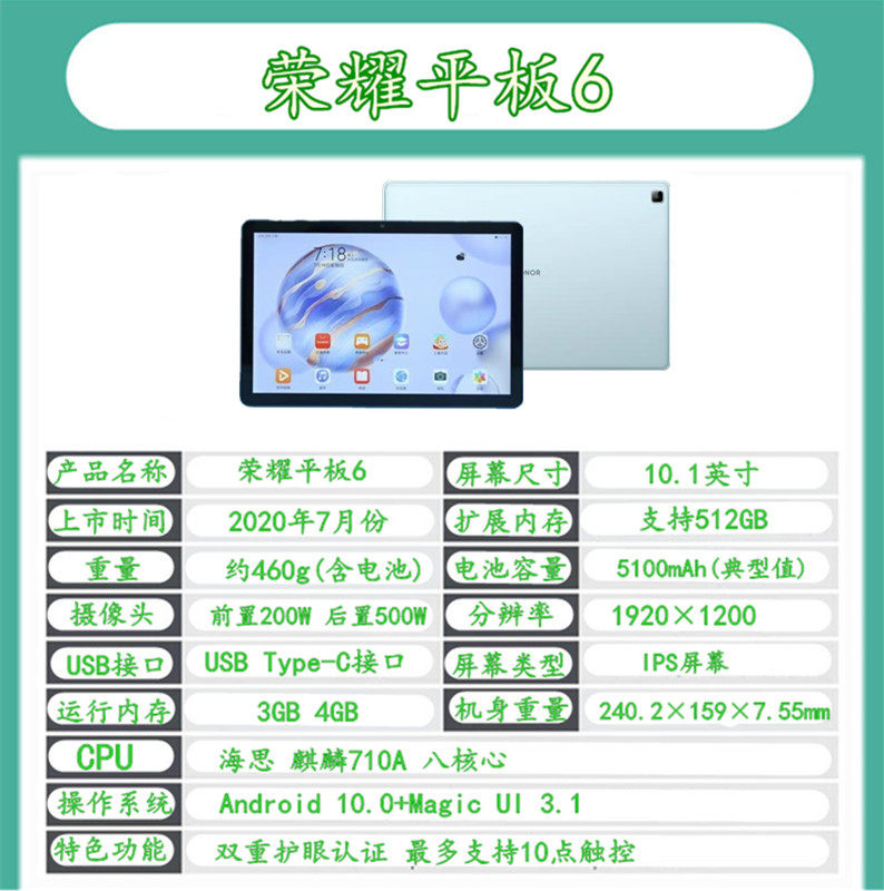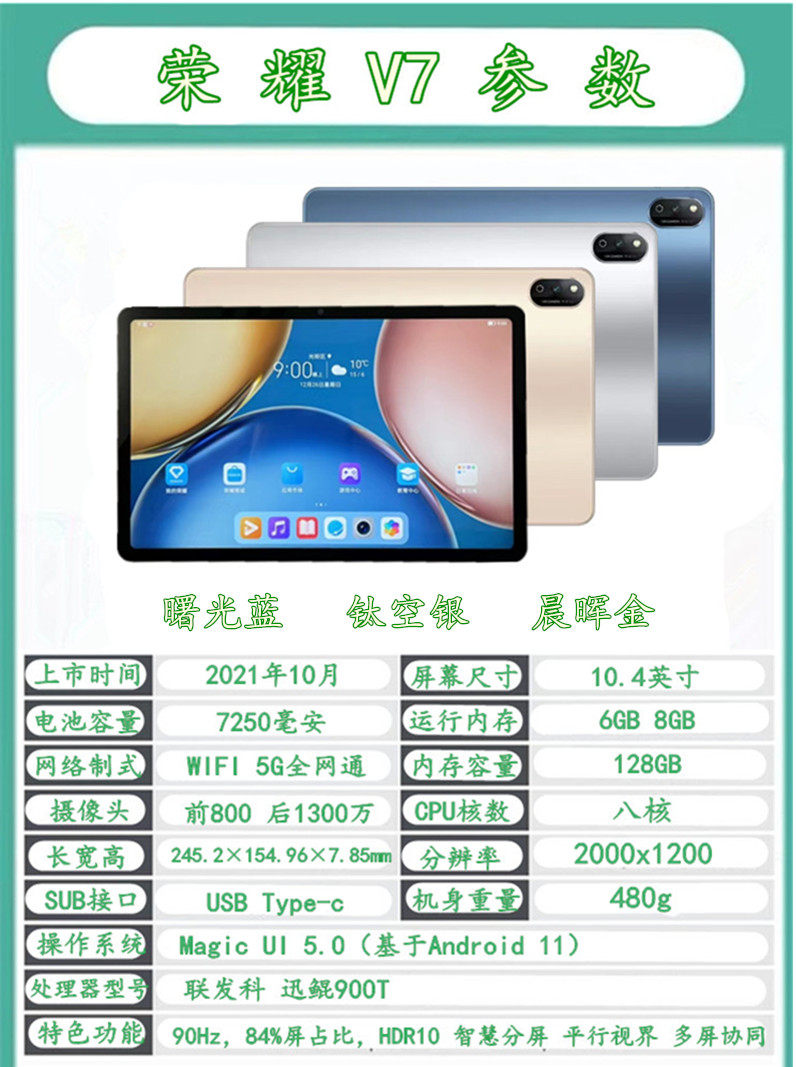 荣耀 Планшет 7 V7PRO2022 Новый планшет 8 12 -INCH Smart Android Light V6 Learning Game 5