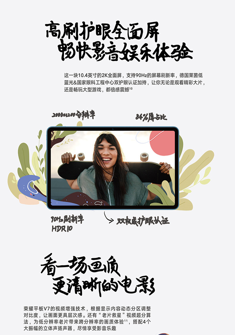 Honor, планшетный ноутбук для школьников, 10.4 дюймов, коллекция 2021, 2 в 1, полноэкранный дисплей, защита глаз, 5G, андроид
