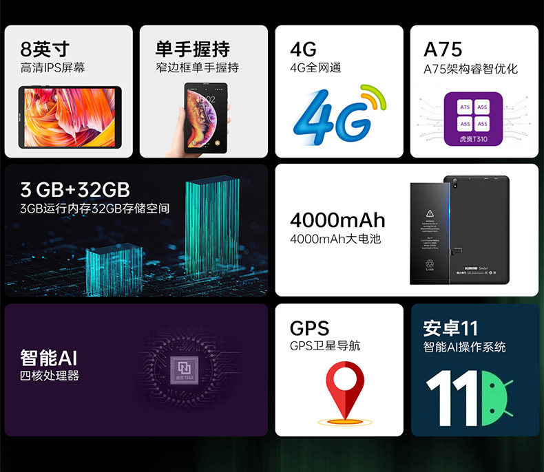 Кубик Рубика, планшетный умный четырёхъядерный обучающий развлекательный ноутбук, 4G, функция поддержки всех сетевых стандартов связи, Android 11, 8 дюймов, 3G, 32gb, 4G