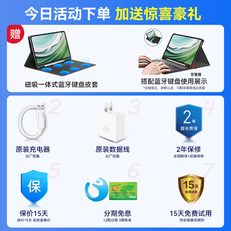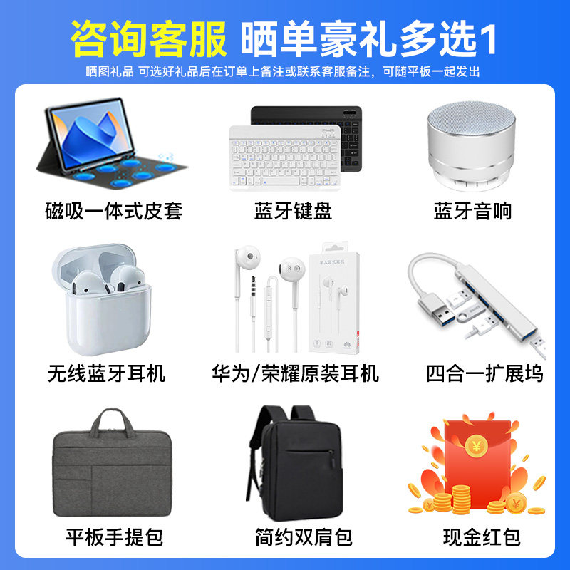 | Тип пакета: | [Официальное специальное издание] Новый продукт Первые продажи, непосредственно спустившиеся 200+2 -лежащую гарантию+магнитный интегрированный кожа (необязательно) +15 дней застрахованной цены+выбор консультации подарки подарка+подарки+зарядка, [Официальный стандартный подарочный пакет] Подарочная гарнитура Bluetooth/банк питания/аудио/мышь/рюкзак 1+ кожаный корпус + клавиатура + кронштейн + ручка + пленка + головка TC + адаптер + хороший подарок для публикации фотографий, [4 Юань Практический пакет] Дайте Bluetooth -гарнитуру/зарядку сокровищ/аудио/мышь/выбор пакета 1+кожаный корпус+клавиатура+кронштейн+ручка+пленка*2+сумка+головка TC+Ротор+Солнечный подарок подарок, [Страховой пакет разбитого экрана] 1 год страхования разбитого экрана+доставка [Практический пакет] +15 дней застрахованной цены+выбор консультации подарка, [Интеллектуальная точка для чтения пакет обучения ручке] Сканирование умного словаря (китайско -брит -взаимный перевод+AI Q & A)+отправить [Практический пакет]+подарок солнечного света, [Huawei Original Leather Set] Оригинальный кожаный чехол Huawei+добавить [Практический пакет] +15 дней застрахованной цены+подарки по выбору консультаций подарок, [Пакет урегулирования мобильности] Сумочка+добавить [Практический пакет] +15 дней застрахованной цены+выбор консультации., [Официальный стандарт] Отправить только планшеты+самостоятельно набор+SF Express ( *Это без подарка и скидка) |