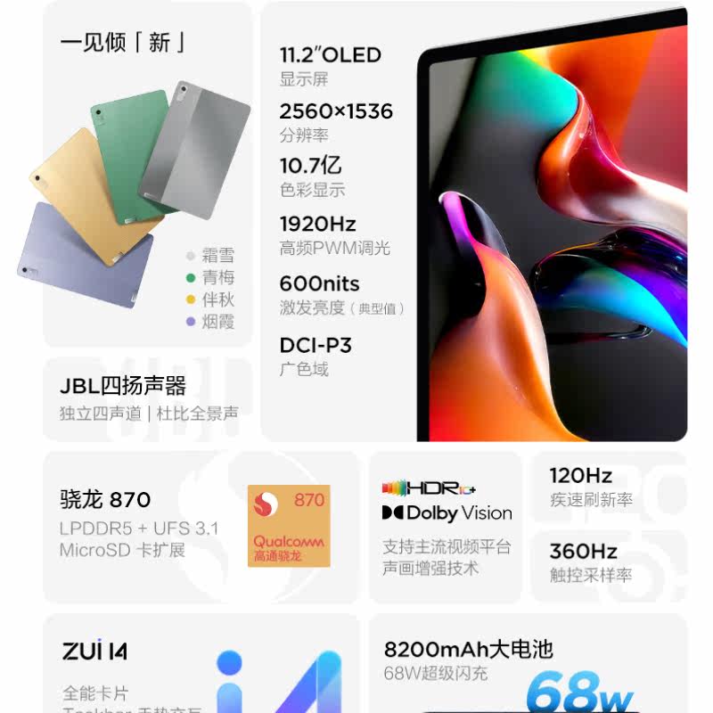 | Тип пакета: | 2022 Xiaoxin Pad Pro 11,2 -INCH [Snapdragon 870/8G/128G] Frost Snow |