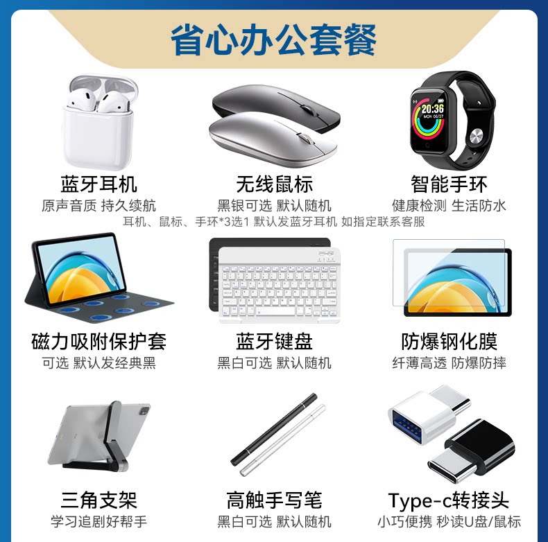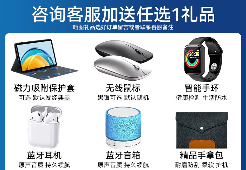 | Тип пакета: | Официальный стандарт (без подарочного пакета/без солнца) подарок), Официальный стандарт: отправьте интеллектуальные браслеты/гарнитуры Bluetooth/мышь/рукописная ручка (4 выберите 1)+кожаный чехол+стальная пленка+стент+Солнце, [Сохранить и беспокойство -free Office Package] Клавиатура+Гарнитура Bluetooth/браслет/мышь (3 выберите 1)+кожаный чехол+пленка+кронштейн+ручки+мышиная площадка+TC Rotor+Сумочка+подарок на солнечную ванна, Портативный пакет путешествий: рюкзак/сумочка (2 выбрана 1 сумочка по умолчанию)+Отправить [провокационный офисный пакет] |