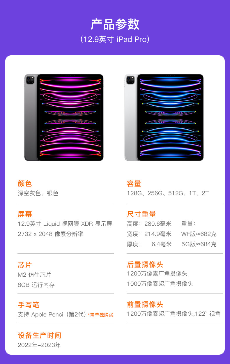 Apple, планшетный ноутбук с чипом, 12.9 дюймов, 2022