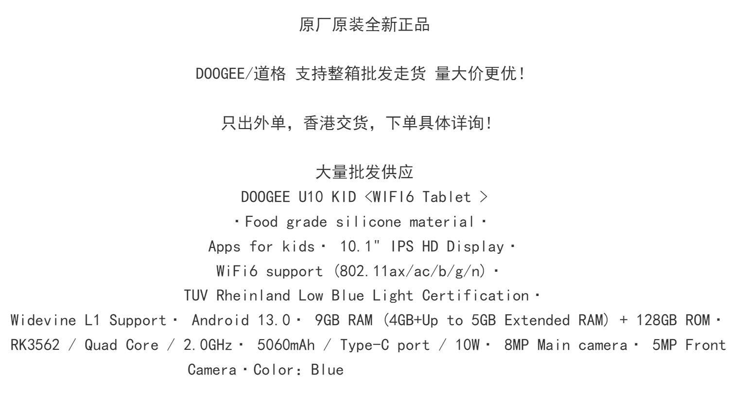 D Oogee U10 Kid 10.1 -Inch 9+128G 5060MAH Android 13 Детская таблетка в Гонконге доставка
