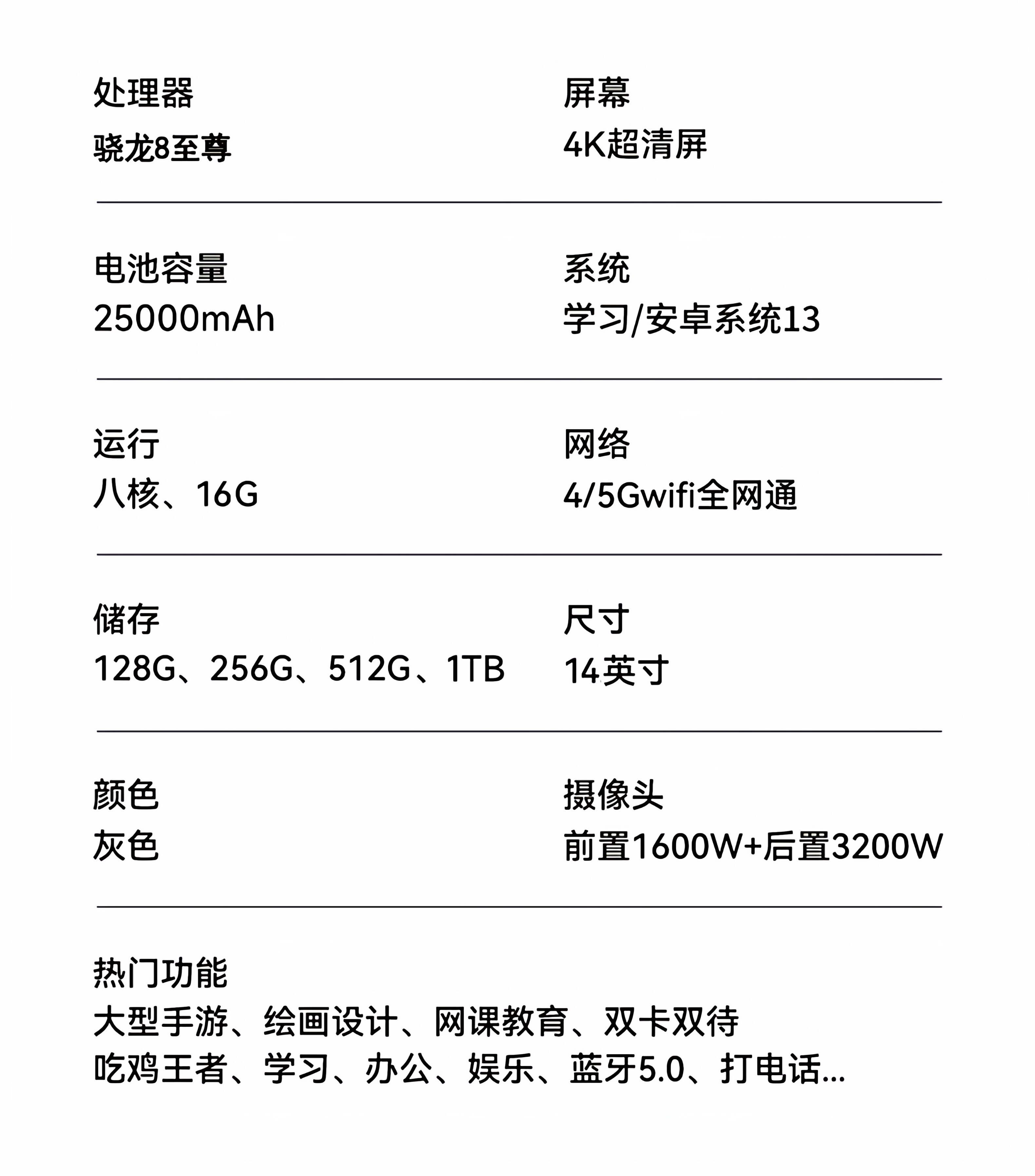 | Тип сети: | 13-дюймовая версия New Pro Game ★ 5G Полное сетевое соединение + двойное резервное резервное резервное значение + Wi-Fi, 14-дюймовая новая флагманская версия ★ 5G Полный доступ к сети + двойной резерв с двойным складом + WiFi |