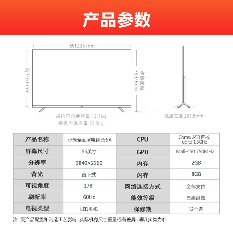 Xiaomi Full -Escreen TV E55A/C 55 -INCH 4K Ultra -High -Definition Red Rice A55 Network 4x LCD Табличка 4C
