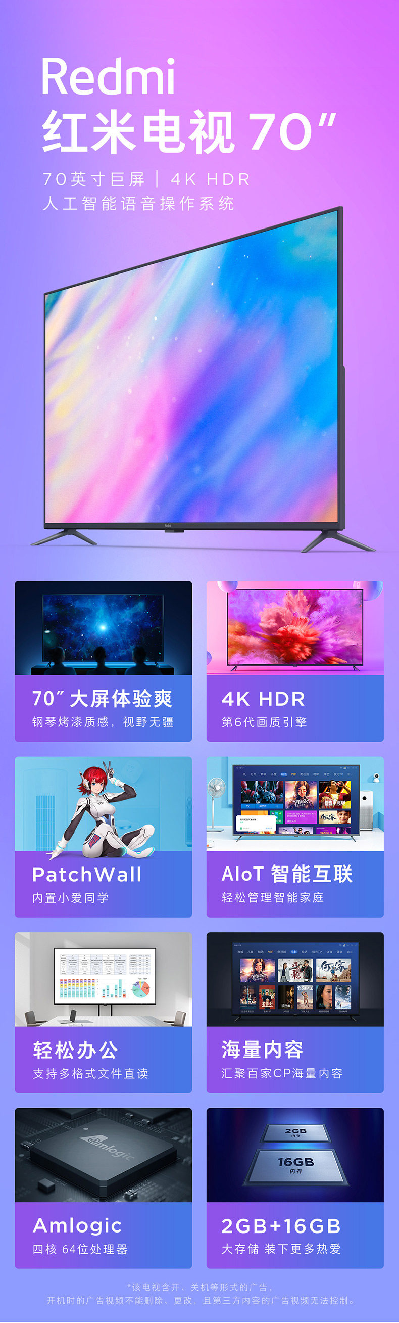 Xiaomi/Xiaomi TV 70 -Inch 4S 70 Smart Wi -Fi Network 4K Ultra -High -Definition Liquidlylal Tablet