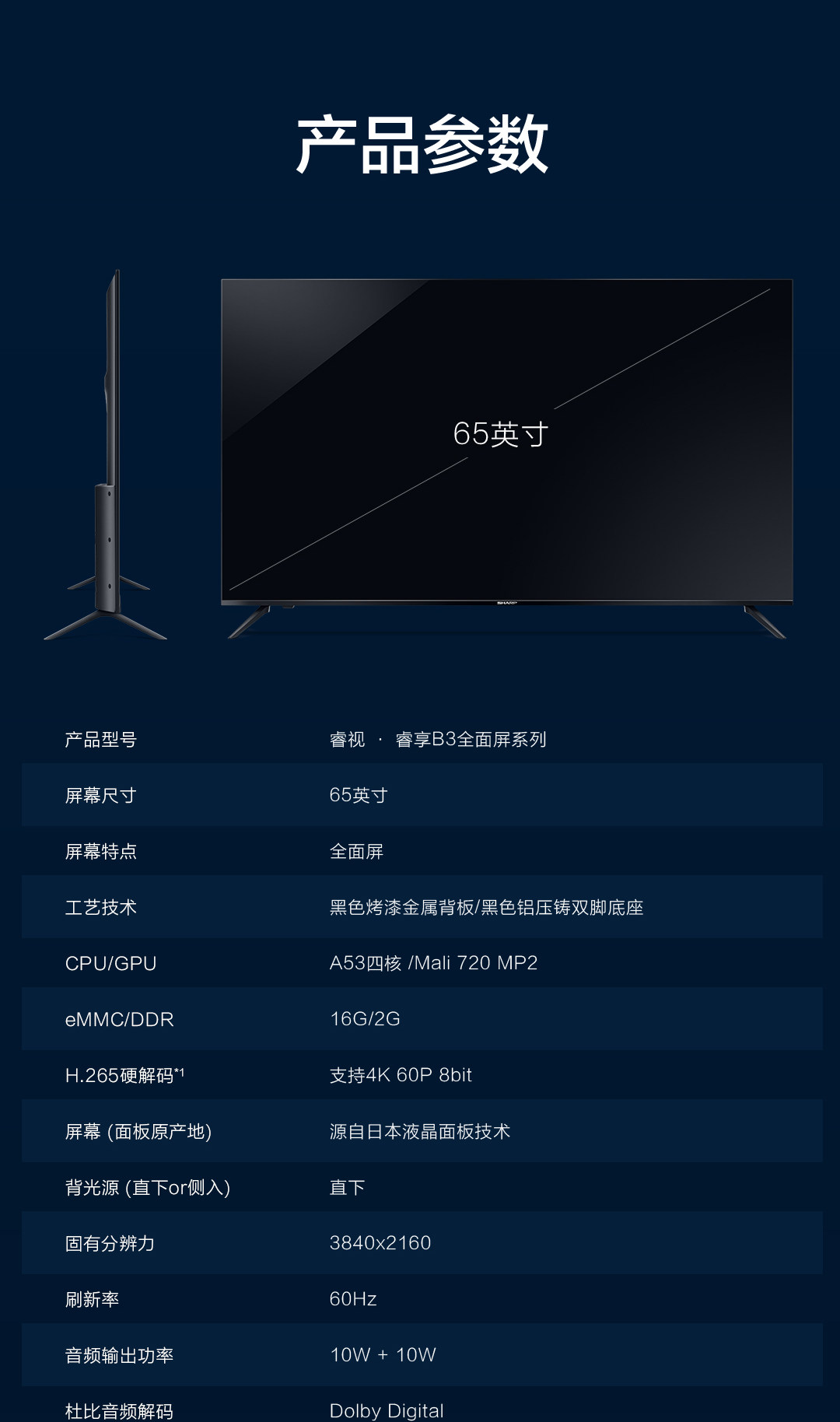 Sharp/夏普 65B3RM 65 -INCH 4K Полно -экранный искусственный интеллект Voice Network LCD TV 75