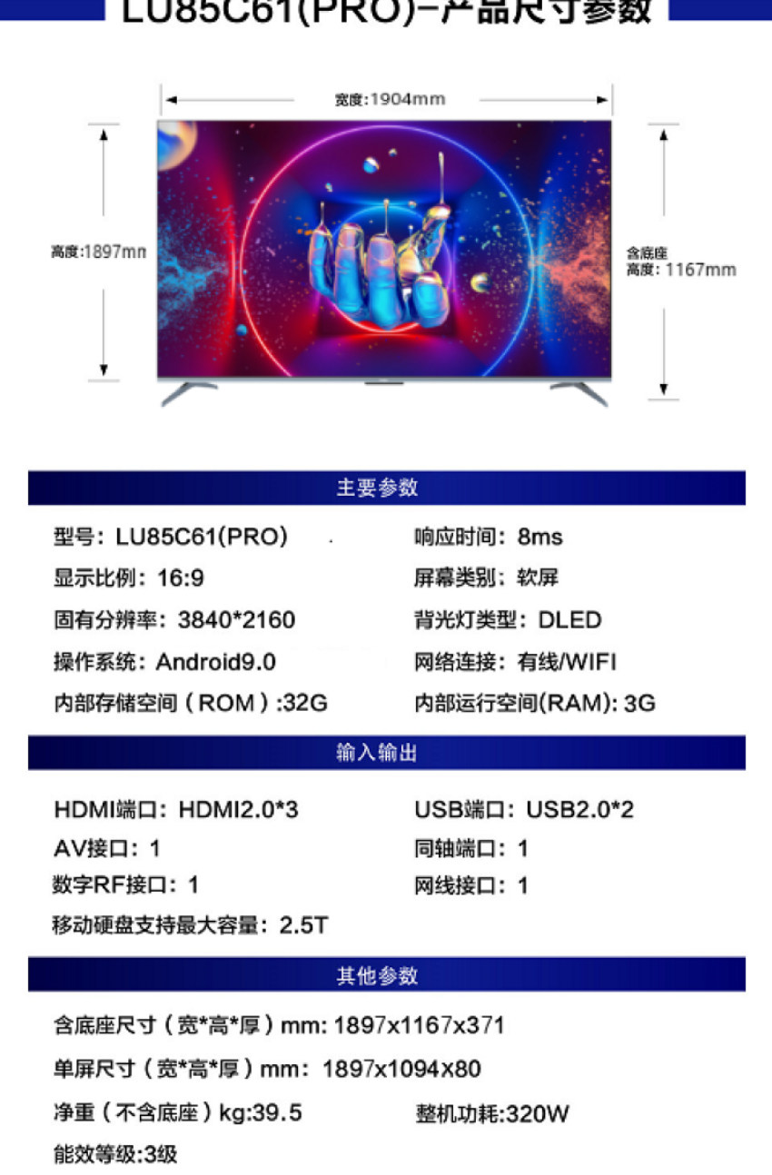 Высокий экран с высоким уровнем экрана Haier 85 Big Screen