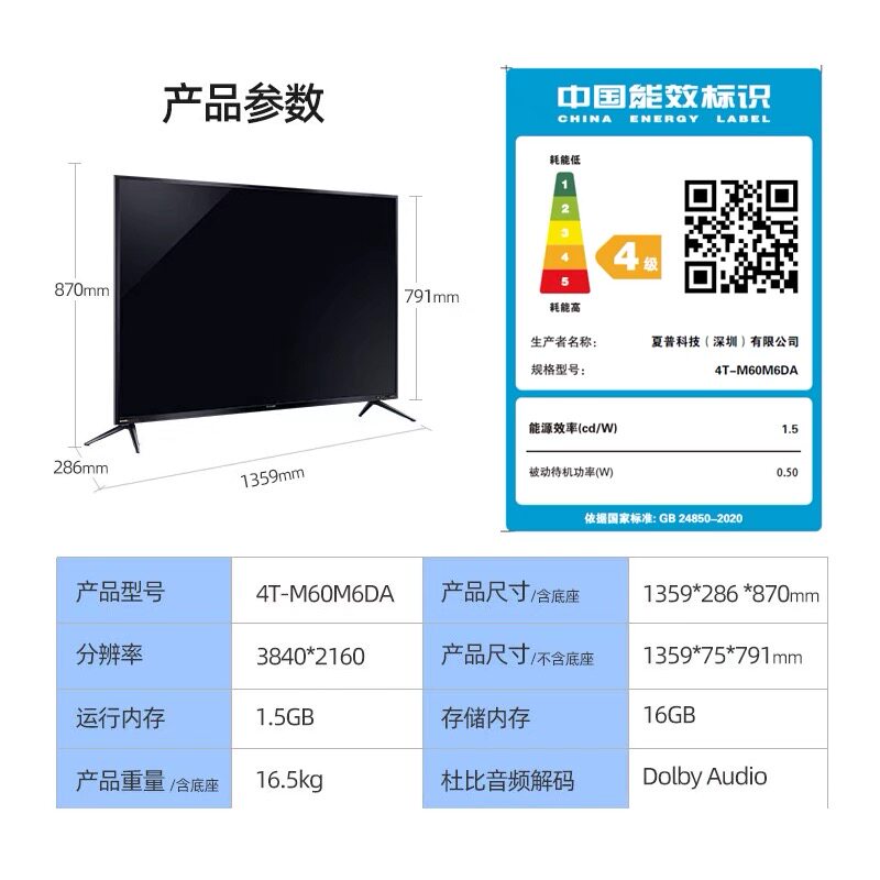 Sharp/Sharp 60 -INCH 4K Ultra -High -Definition 60A5 Smart Network 60Q6 ЖК -телевизор 60Q5CA