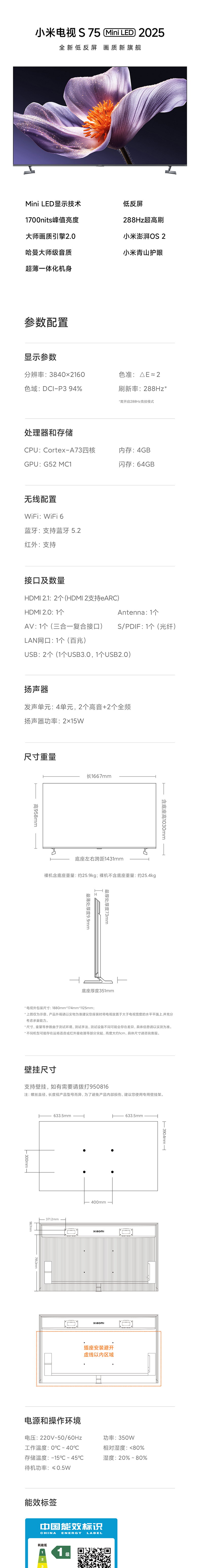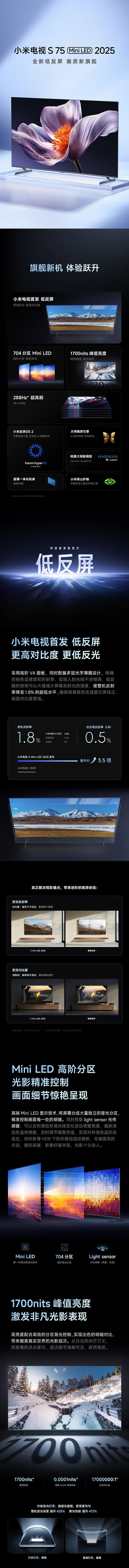 【Новый продукт】 Xiaomi S75 Минилированный 2025 Низко-обратный экран 75-дюймовый телевизор со старой новой субсидией