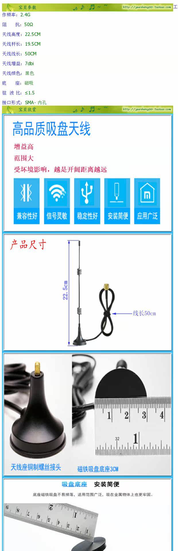 2,4 г всасывающей чашки антенны Wi -Fi антенна Zigbee Bluetooth 7 дБ высотой сигнал для укрепления внутренних отверстий SMA на большие расстояния