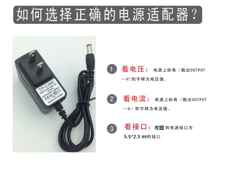 Этот адаптер мощностиСпецификация: 5V—1A, Интерфейс составляет 5,5*2,5, а встроенный шох совместим с интерфейсом 5,5*2,1.При покупке, пожалуйста, проверьте ток напряжения и размер интерфейса перед покупкой, чтобы не было необходимости для ненужных проблем. Не уверен, можно ли использовать ваш маршрутизатор, вы можете увидеть выходные характеристики на старом источнике питания (вывод DC) или объяснение нижней части маршрутизатора в нижней части маршрутизатораВыходные спецификации (вывод DC), подтвердите выход(Вывод DC) Спецификация 5V1000MA,/5V1A, вы можете увидеть, является ли интерфейс интерфейса питания интерфейсом питания внутренним и внешним диаметром интерфейса, он является оно5,5 мм*2,5 мм или5,5 мм*2,1 мм, если число по номеру, интерфейс одинаково, его можно использовать.Этот источник питания посвящен: мониторингу оборудования, светодиодных ламп, небольших настольных ламп, переключателей, телевизионных коробок, оборудования для зарядки, телефона и других различных бытовых приборов/портативного оборудования, требующих электрических приборов DC 5V1A!