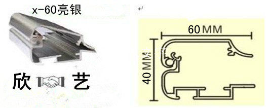Наружная рекламная выставочная доска пограничная алюминиевая профиль/открытие алюминиевого сплава коробка/информационная коробка x-60 Bright Silver