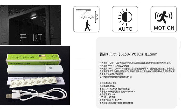 Светодиодный шкаф для зарядки USB, основной шкаф для шкафного шкафа ящик для индукции человеческий индукция магнитная всасывание Ультра -тщательное управление светом маленький ночной свет